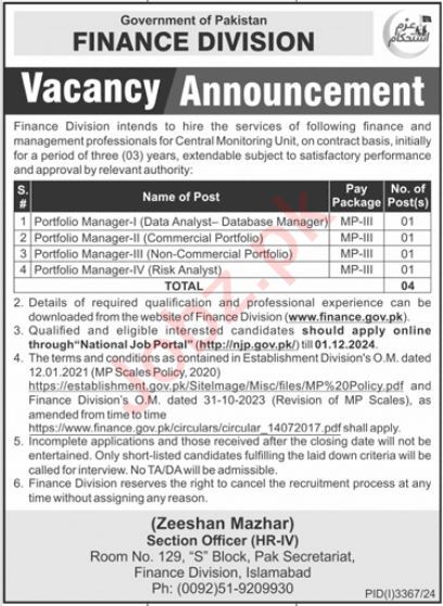 Finance Division is looking for candidates for following posts as per job advertisement published in daily Jang Newspaper of November 19, 2024 for location Islamabad, islamabad Islamabad Pakistan: