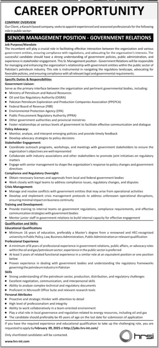 Vacancies in Human Resource Solution International HRSI Advertisement January 2025