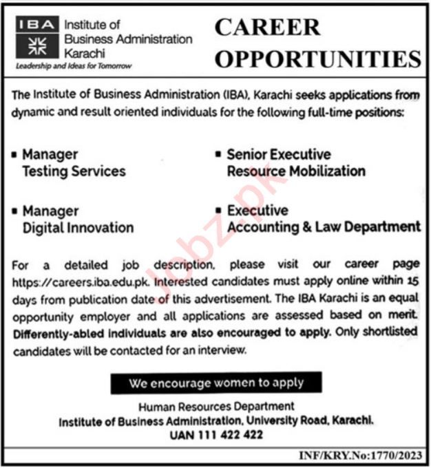 Institute of Business Administration IBA latest Private Management jobs and others can be applied till NaN undefined NaN or as per closing date in newspaper ad. Read complete ad online to know how to apply on latest Institute of Business Administration IBA job opportunities.