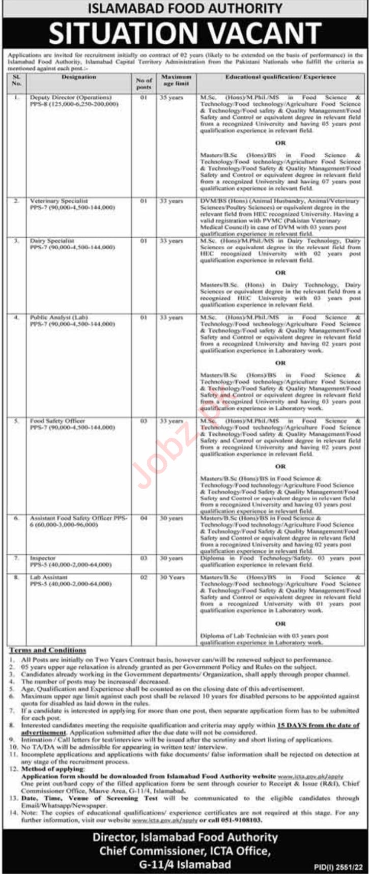 Vacancies in Islamabad Food Authority Advertisement October 2022