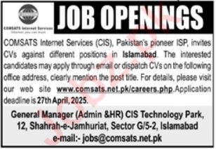 Vacancies in COMSATS Internet Services Advertisement April 2025