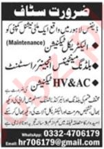 Multi National Company Lahore, lahore Punjab Pakistan invites applications from eligible candidates for the post of electrical technician, hvac techncian and building maintenance engineer as per advertisement of November 24, 2024 published in daily Jang Newspaper. Candidates with Bachelor, Others, Intermediate and Matric etc. educational background will be preferred.