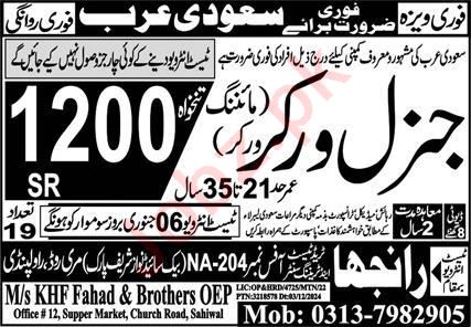 Ranjha Trade Test & Training Center jobs advertisement dated about 5 January 2025 in daily Express Newspaper invites application for the vacant post of general worker in Saudi Arabia, saudi arabia Saudi Arabia. Candidates with Primary and Middle etc. educational background will be preferred.