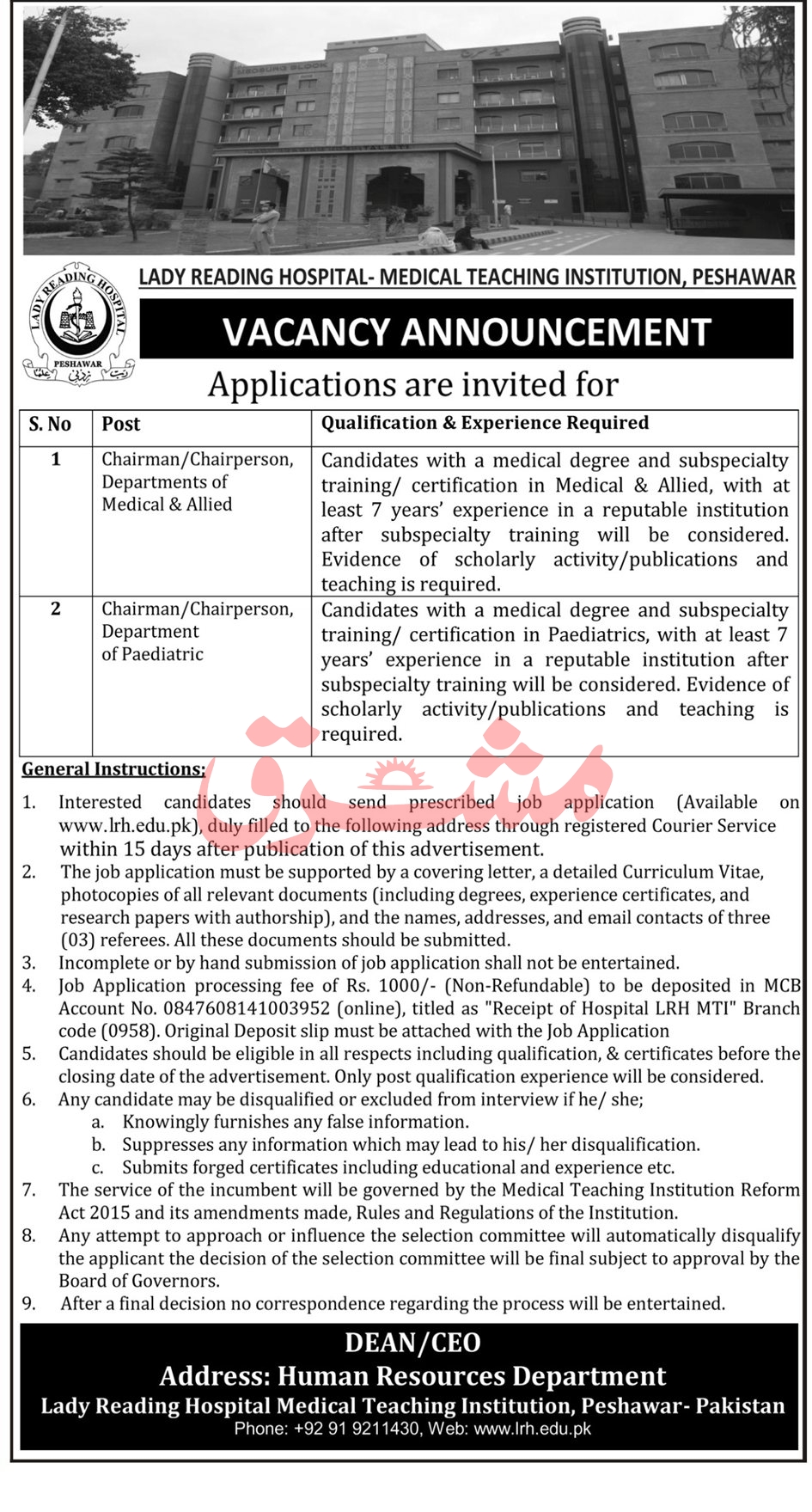 Latest Lady Reading Hospital Peshawar Jobs 2025