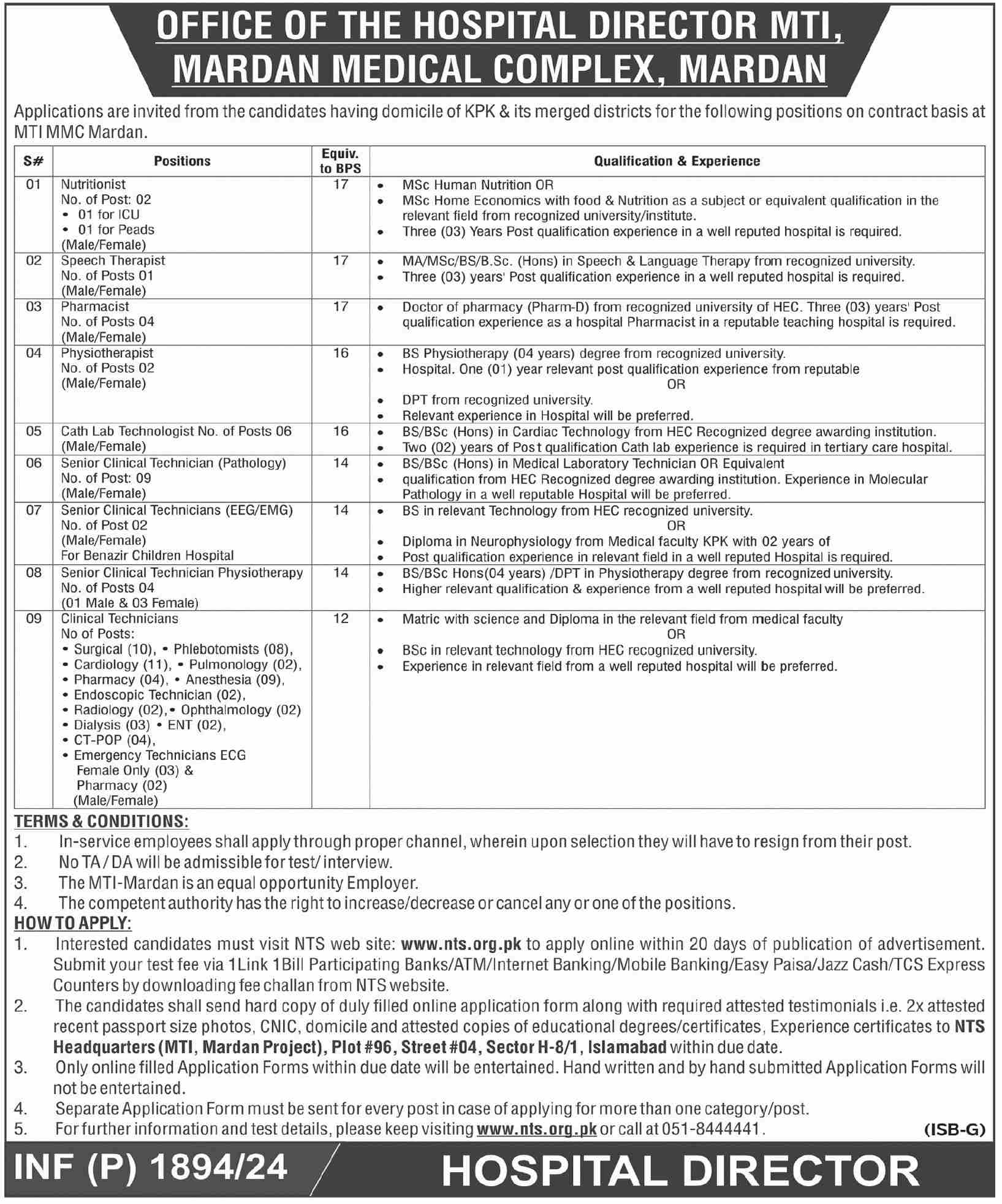 Latest Medical Teaching Institution MTI Medical Posts Mardan 2025