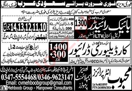 Latest Mehboob Enterprises Overseas Employment Promoters Driving Posts Riyadh 2025
