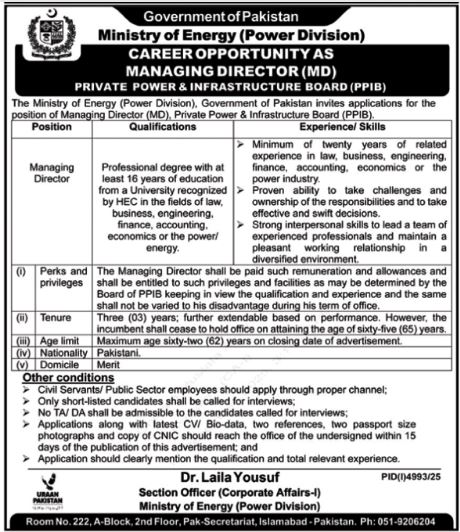 Latest Ministry Of Energy Islamabad Job Announcement 2026
