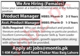 Montis Pvt Limited jobs advertisement dated about 14 January 2024 in daily Jang Newspaper invites application for the vacant post of product manager and assistant product manager in Lahore, lahore Punjab Pakistan. Educational qualifications required Pharma D and MBBS etc.