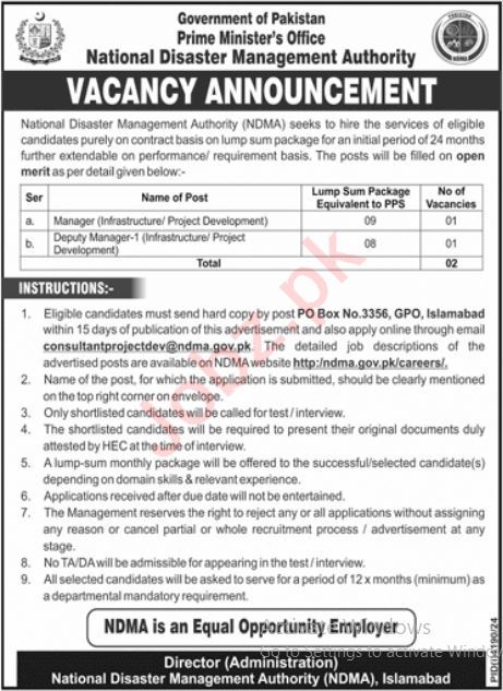 Vacancies in National Disaster Management Authority Advertisement December 2024