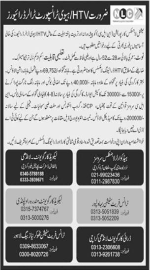 National Logistics Corporation NLC is looking for candidates for following posts as per job advertisement published in daily Jang Newspaper of December 16, 2025 for location Lahore, lahore Punjab Pakistan: