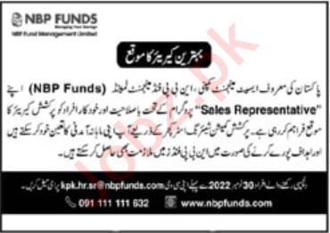 NBP Funds Management Limited jobs advertisement dated about 7 November 2022 in daily Mashriq Newspaper invites application for the vacant post of sale representative in Peshawar, peshawar Khyber Pakhtunkhwa KPK Pakistan. Candidates with Master and Bachelor etc. educational background will be preferred.