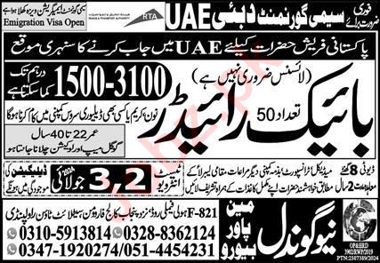 New Gondal Manpower Bureau invites applications for job positions advertised in daily Express dated 1 July 2024 for following vacancies in Dubai, dubai Dubai.