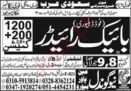 New Gondal Manpower Bureau is looking for candidates for following posts as per job advertisement published in daily Express Newspaper of July 8, 2024 for location Riyadh, riyadh Saudi Arabia:
