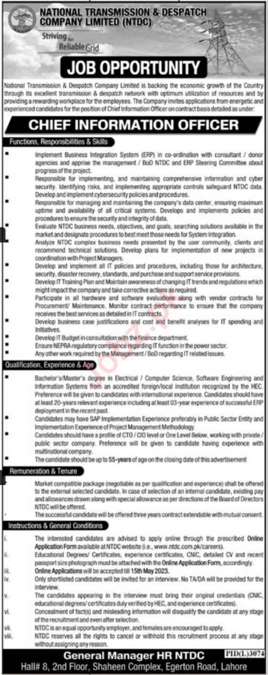 National Transmission & Despatch Company NTDC latest Government Management jobs and others can be applied till NaN undefined NaN or as per closing date in newspaper ad. Read complete ad online to know how to apply on latest National Transmission & Despatch Company NTDC job opportunities.