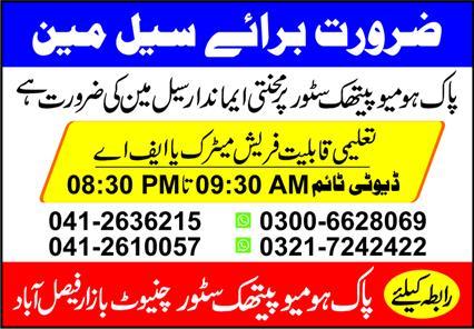 Pak Homeopathic Store invites applications for job positions advertised in daily Express dated 17 October 2023 for following vacancies in Faisalabad, faisalabad Punjab Pakistan.