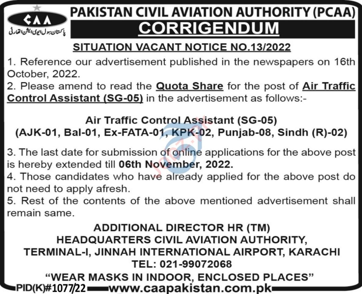 Vacancies in Pakistan Civil Aviation Authority CAA Advertisement October 2022