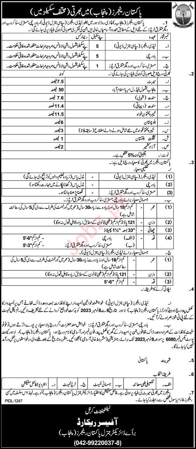 Vacancies in Pakistan Rangers Advertisement October 2023