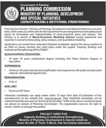 Planning Commission invites applications for job positions advertised in daily The News dated 17 April 2025 for following vacancies in Islamabad, islamabad Islamabad Pakistan.
