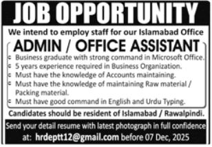 Private Company is looking for candidates for following posts as per job advertisement published in daily Jang Newspaper of November 17, 2025 for location Islamabad, islamabad Islamabad Pakistan: