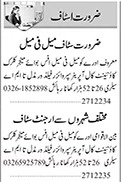 Vacant posts including female staff, male staff, accountant, helper, office boy, call operator, clerk and manager are announced in Private Company Karachi, karachi Sindh Pakistan as per 27 December 2023 advertisement in daily Dunya Newspaper. Preferred Education is Intermediate, Matric, Bachelor and BA etc.