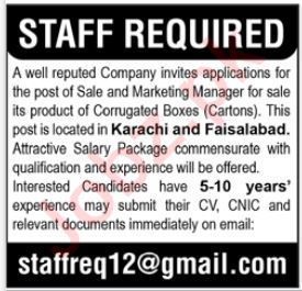 Vacant posts including sale marketing manager are announced in Private Company Karachi, karachi Sindh Pakistan as per 25 February 2024 advertisement in daily Jang Newspaper. Candidates with Bachelor, MS and Master etc. educational background will be preferred.