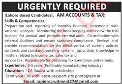 Private Industry Lahore, lahore Punjab Pakistan invites applications from eligible candidates for the post of am account tax as per advertisement of September 22, 2024 published in daily Jang Newspaper. Bachelor, MS and Master etc. educational qualification will be preferred.