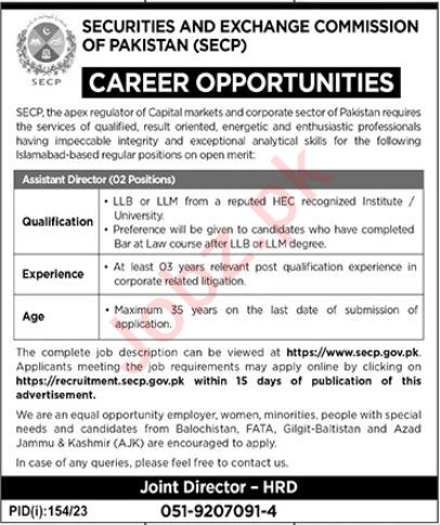 Latest Management jobs and others Private jobs in Securities and Exchange Commission of Pakistan closing date is around undefined NaN, NaN, see exact from ad. Read complete ad online to know how to apply on latest Securities and Exchange Commission of Pakistan job opportunities.