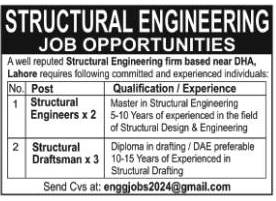 Structural Engineering Firm is looking for candidates for following posts as per job advertisement published in daily Nation Newspaper of April 15, 2024 for location Lahore, lahore Punjab Pakistan:
