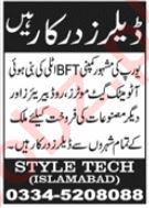 Vacant posts including dealer are announced in Style Tech Pvt Ltd Islamabad, islamabad Islamabad Pakistan as per 7 January 2024 advertisement in daily Jang Newspaper. Candidates with Matric and Intermediate etc. educational background will be preferred.