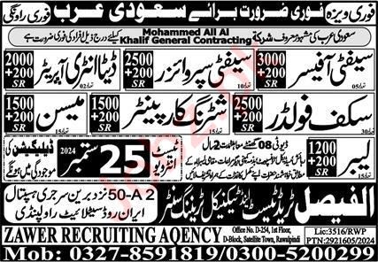 Latest Overseas jobs in Zawer Recruitment Agency in Industrial and others can be applied till 25 September 2024 or as per closing date in newspaper ad. Read complete ad online to know how to apply on latest Zawer Recruitment Agency job opportunities. During job accommodation, transport and medical facility is available.