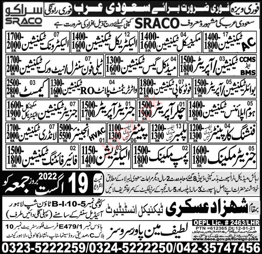Latif Manpower Services is looking for candidates for following posts as per job advertisement published in daily Express Newspaper of August 14, 2022 for location Makkah, madina Saudi Arabia: