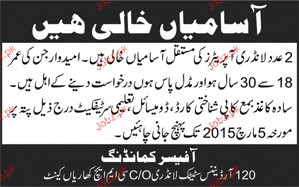 Laundry Operators Job In Pakistan Army