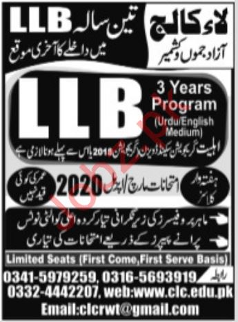 A well repu ted and well established Law College has announced admission for LLB in Ajk Muzaffarabad, Interested Student submit their admission form before last date. Read newspaper ad for exact details.