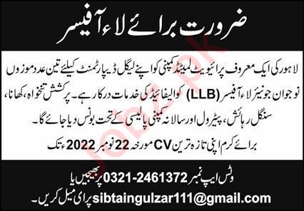 Law Officer Jobs 2022 In Lahore