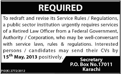 Apply as per details in job advertisement. Login to view further details of how to apply via https://www.jobz.pk online.