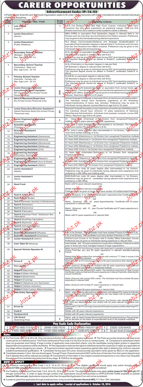 Apply as per details in job advertisement. Login to view further details of how to apply via https://www.jobz.pk online.