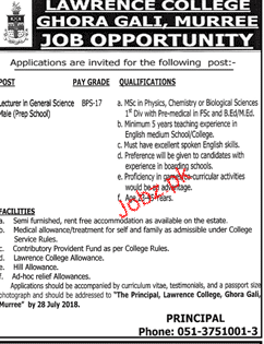 Lawerance College Ghora Galis Murre Jobs