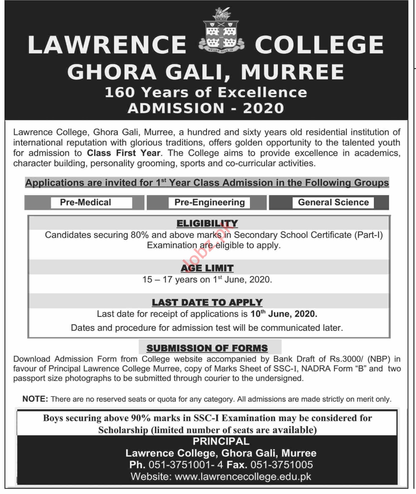 Lawrence College Ghora Gali Admissions 2020 for Inter
