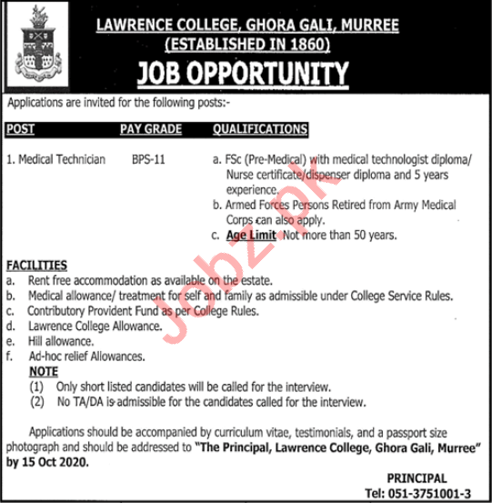 Lawrence College Ghora Gali Murree Jobs 2020 For Technician