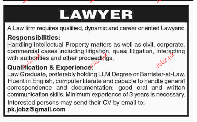 Apply as per details in job advertisement. Login to view further details of how to apply via https://www.jobz.pk online.