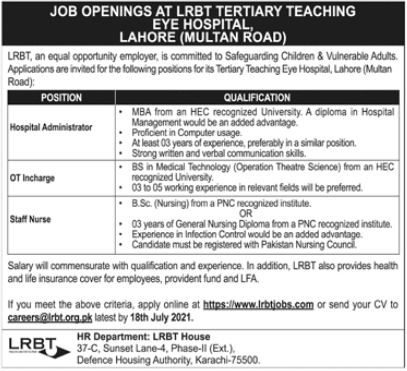 Vacancies in Layton Rahmatullah Benevolent Trust LRBT Advertisement July 2021