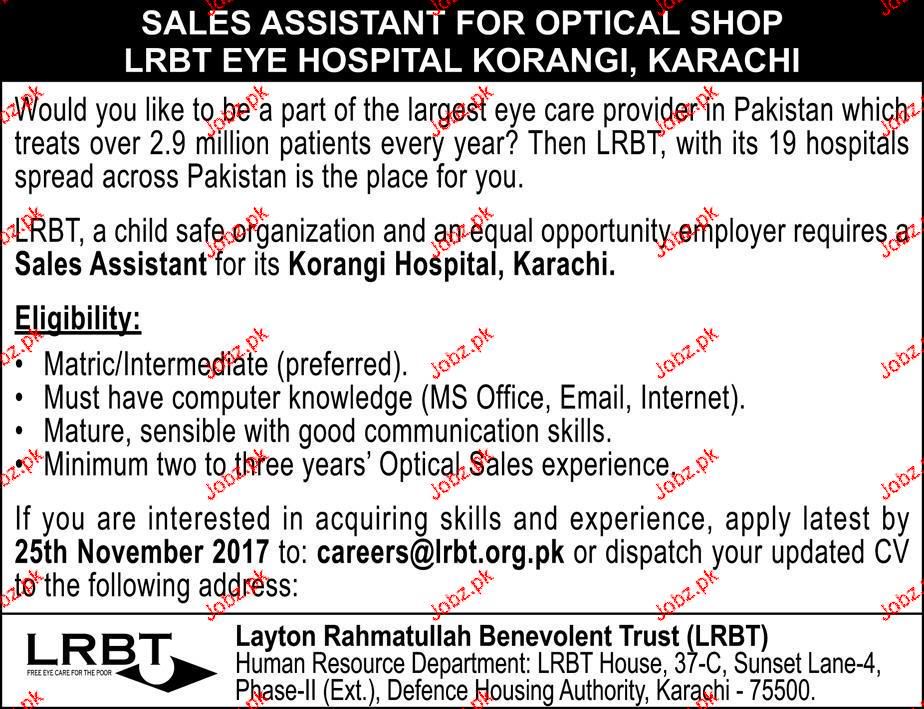 Latest Layton Rahmatullah Benevolent Trust LRBT Sales Posts Karachi 2025