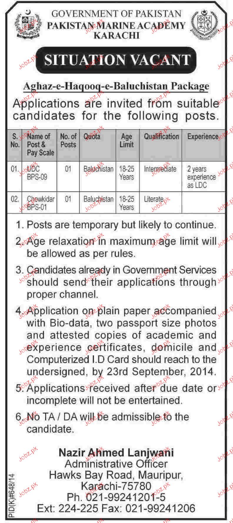 LDC And Chawkidars Job In Pakistan Marine Academy