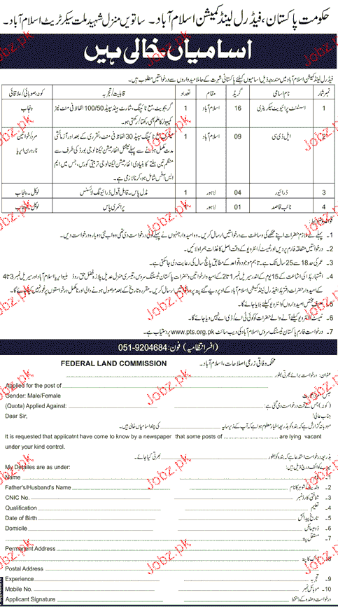 Apply as per details in job advertisement. Login to view further details of how to apply via https://www.jobz.pk online.