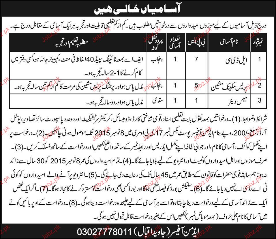 Apply as per details in job advertisement. Login to view further details of how to apply via https://www.jobz.pk online.