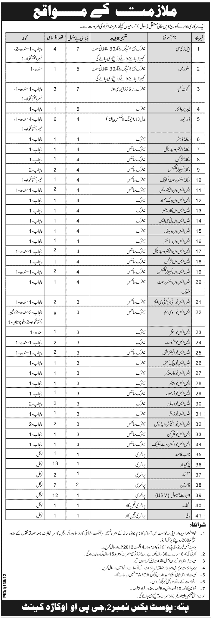 Apply as per details in job advertisement. Login to view further details of how to apply via https://www.jobz.pk online.