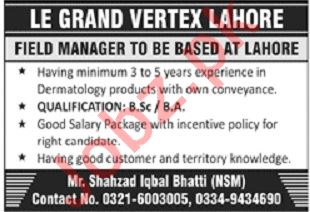 LE Grand Vertex Pharmaceuticals Lahore Jobs for Managers