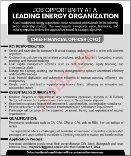 Leading Energy Organization CFO Jobs 2024