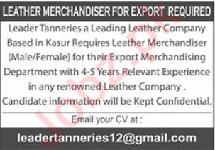 Leather Company jobs advertisement dated about 5 February 2023 in daily Jang Newspaper invites application for the vacant post of leather merchandiser in Kasur, kasur Punjab Pakistan. Preferred Education is Bachelor etc.