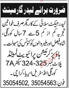 Leather Garment Karegirs Job Opportunity